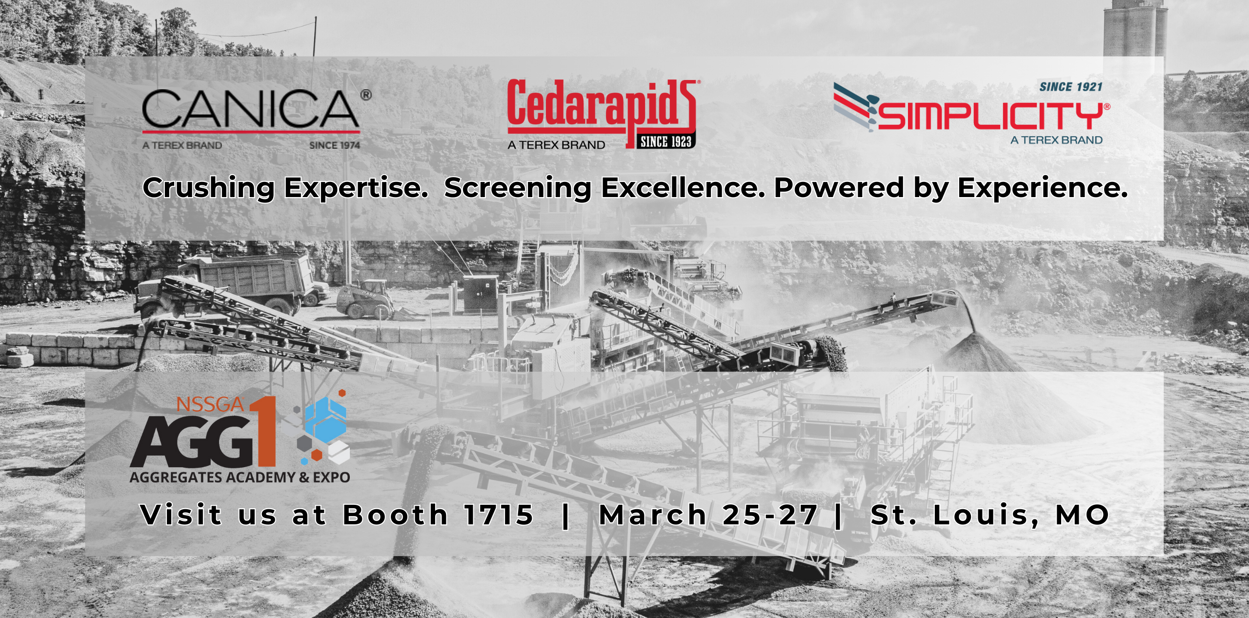 NSSGA Aggregates Academy & Expo (AGG1) is just around the corner. This year it will be held in St. Louis, MO at the America's Center Convention Complex on March 25-27, 2025! Stop by our booth #1715 located in the Exhibit Hall.