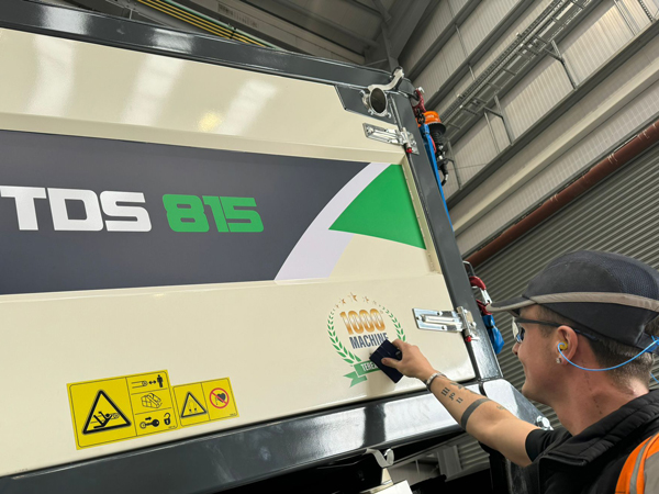 The 1000th milestone machine is the Terex Ecotec TDS 815 Slow Speed Shredder, a model introduced earlier this year that has been exceptionally well-received in the marketplace. One customer has described it as a 'Swiss Army Knife' for waste management applications. The compact yet powerful machine tackles diverse challenges that waste materials present thanks to its 1.5m twin shaft shredding unit that allows for highly efficient material reduction and quick-change shafts for adaptability and maintenance efficiency.