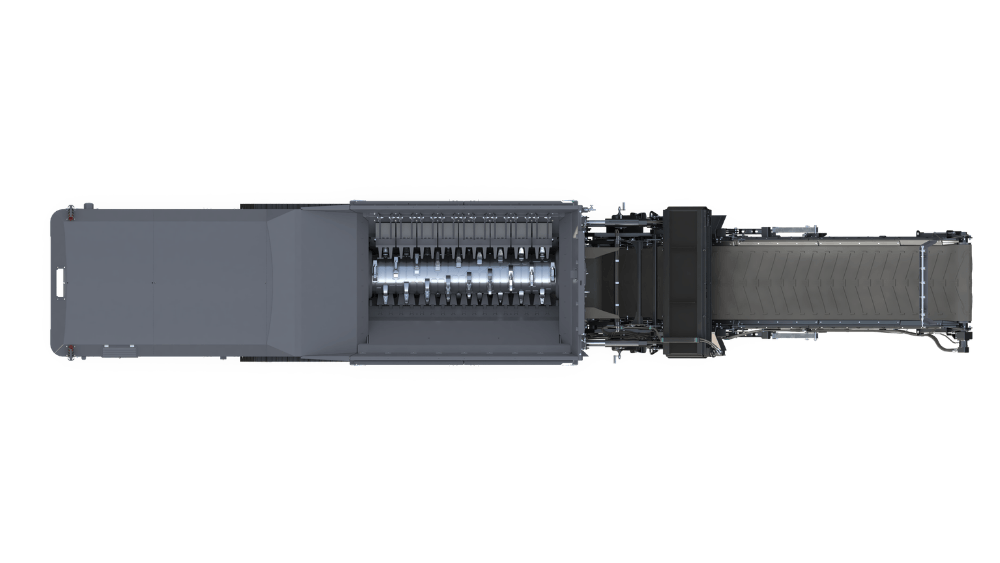 The TSS 390 Plus shares all the key features of the TSS 390. These include the in-house–designed shredding chamber with a hydrostatically driven shredding shaft offering full-speed reverse. Combined with customisable shredding programs, this provides improved shaft cleaning in difficult applications, reducing wrappage and optimising throughput. The chamber also features a hydraulically adjustable counter comb, allowing simple adjustment of piece size. The comb can operate in release mode for uninterrupted shredding or in fixed mode for applications where a precise piece size is critical. With double-sided access, chamber maintenance can be carried out with ease, maximising uptime.