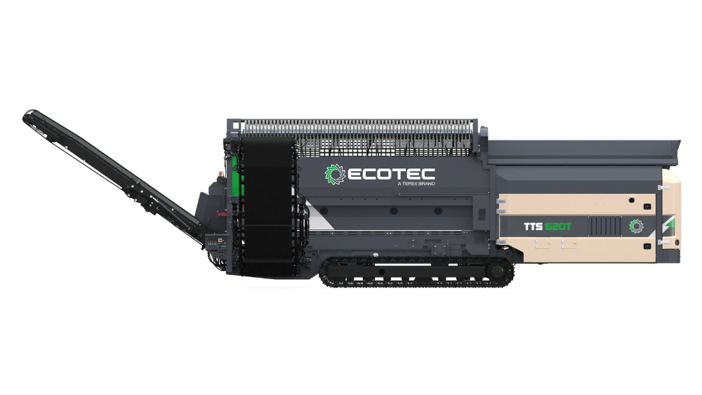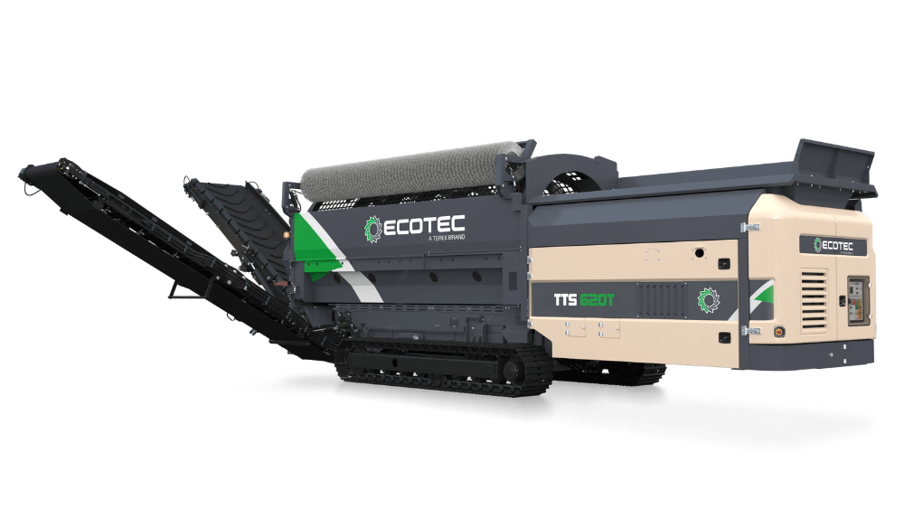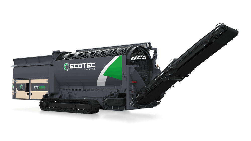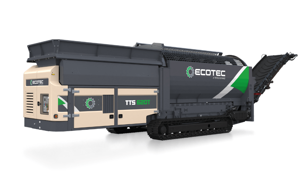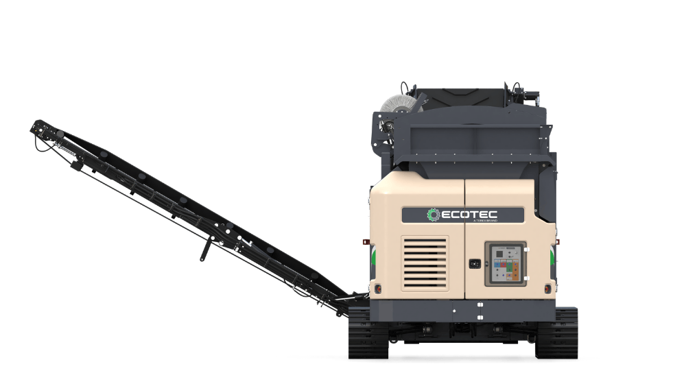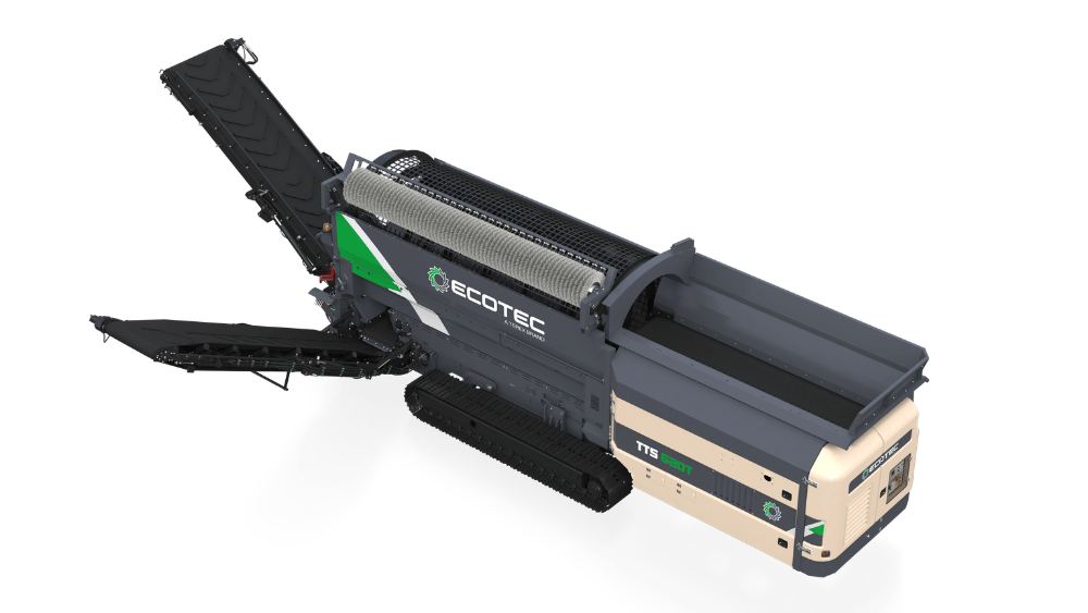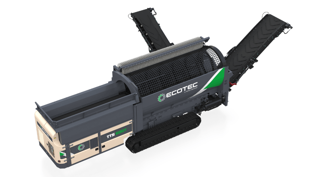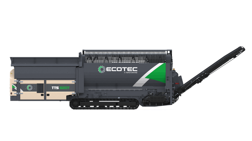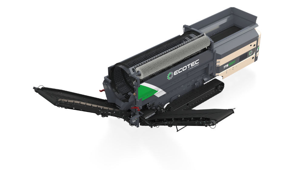 Ecotec's TTS 620T Tracked Trommel Screen features a highly efficient engine and hydraulic drive system combined with advanced material processing control system offer maximum production combined with minimum costs. It is ideally suited for screening compost, biomass, soil, gravel & waste.