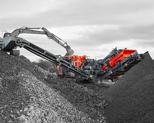 Il grande gruppo tramoggia/alimentatore ha una capacità di 4,2 m3 (5,5 iarde3) e può essere alimentato direttamente da escavatori, pale gommate e macchine ausiliarie. Nelle applicazioni di frantumazione e vagliatura, la macchina può essere utilizzata per un'alimentazione "dosata o controllata" del materiale.