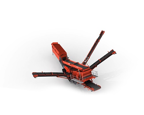 このスクリーンボックスでは、すばやいくさび張力調整、アクセス穴と下部デッキの油圧張力調整システムによって、メッシュ交換に要する時間が短縮されています。 4つの荷下ろしコンベアはすべて調整可能で、輸送用の折りたたみ機能も備えています。