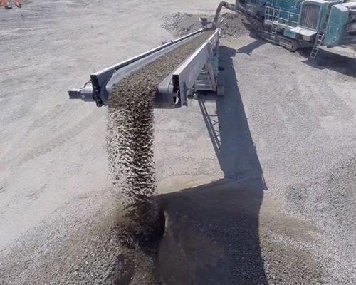 - Maszyna jest wyposażona w przenośnik produktu o długości 19,79 m (64 stopy 11 cali), który może przenosić materiał z przepustowością do 400 ton/godz.