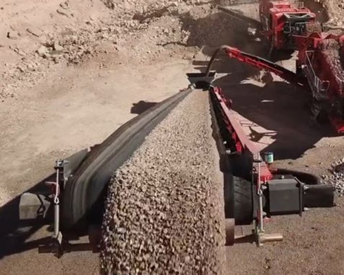 - A máquina possui um transportador de produtos de 30 m (98’ 9”) que tem a capacidade de transferir até 600+tph de material.