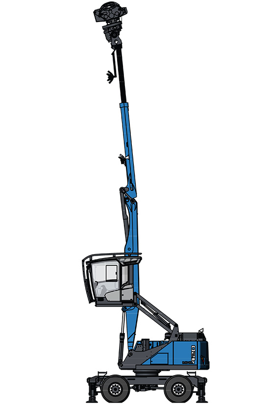 La MHL420 est également convaincante sur les terrains difficiles grâce à sa puissante transmission, ses pneus forestiers et sa direction intégrale. Le châssis a été spécialement conçu pour une utilisation difficile et exigeante dans le secteur forestier. Même en cas de portée maximale, la stabilité est assurée par le stabilisateur allongé à commande individuelle et les plaques d'appui élargies.