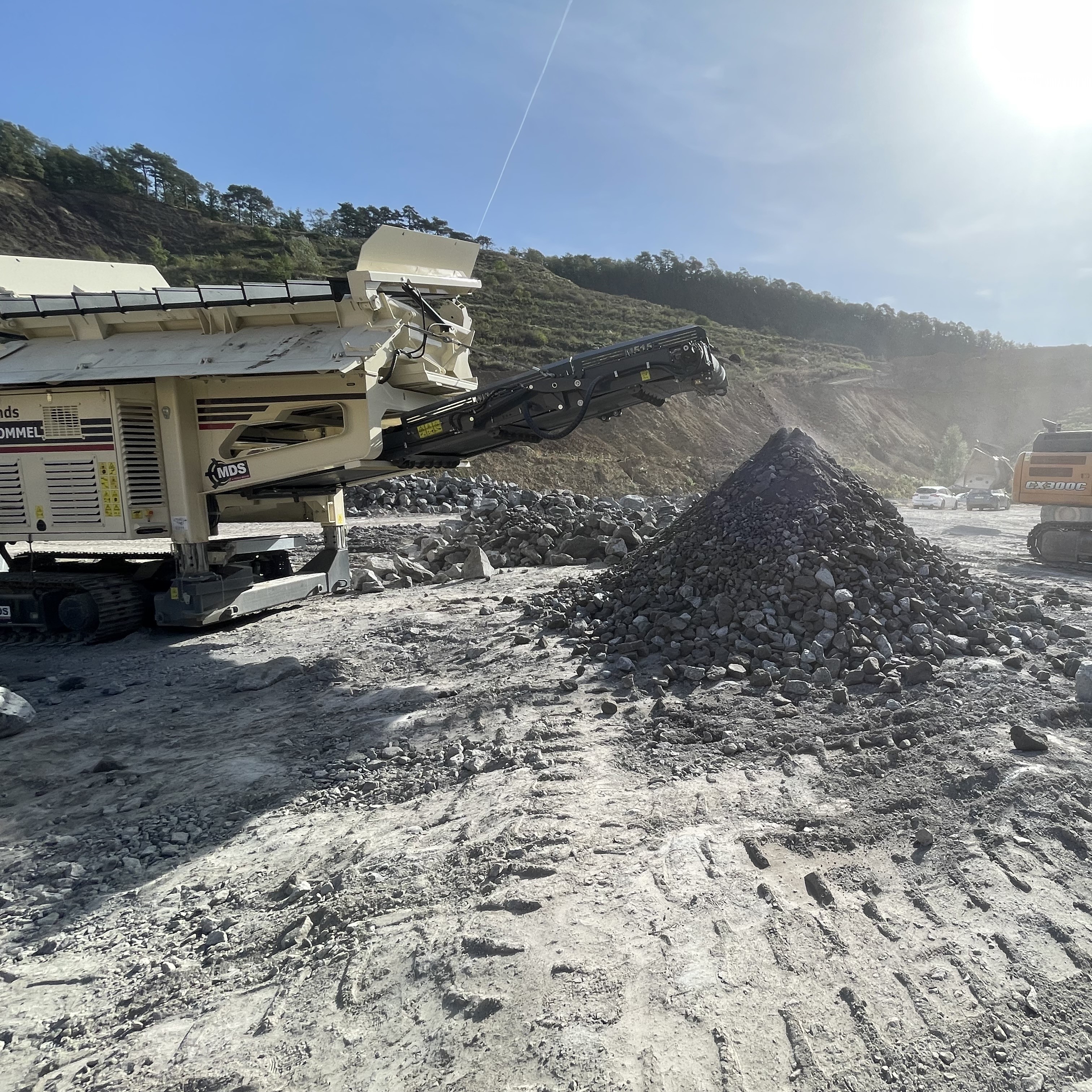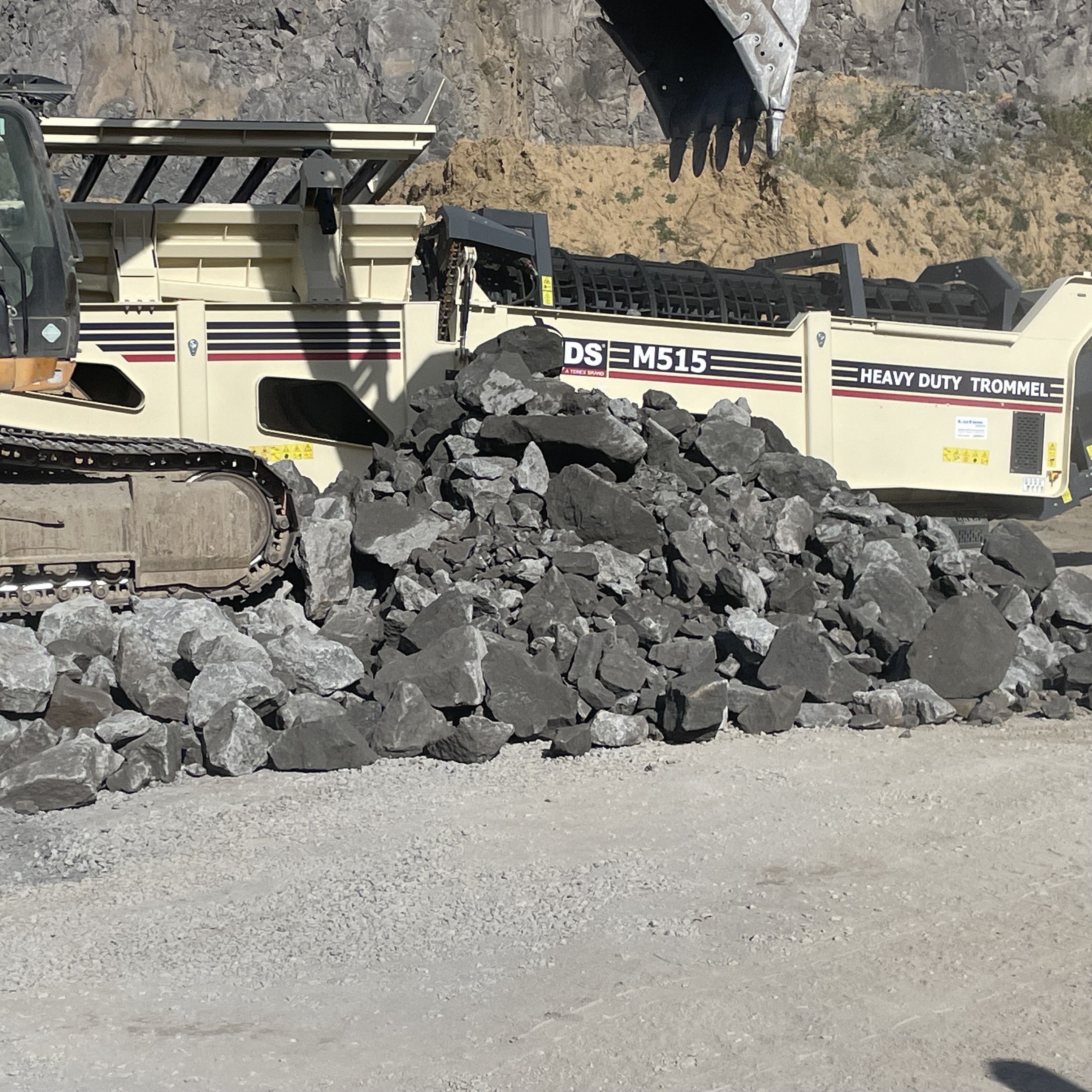 Additionally, a tipping grid with 450mm openings enabled direct feeding of material into the M515 without the need to preprocess the pile, any rocks that were too large were rejected by the grid and deflected away from the machine.