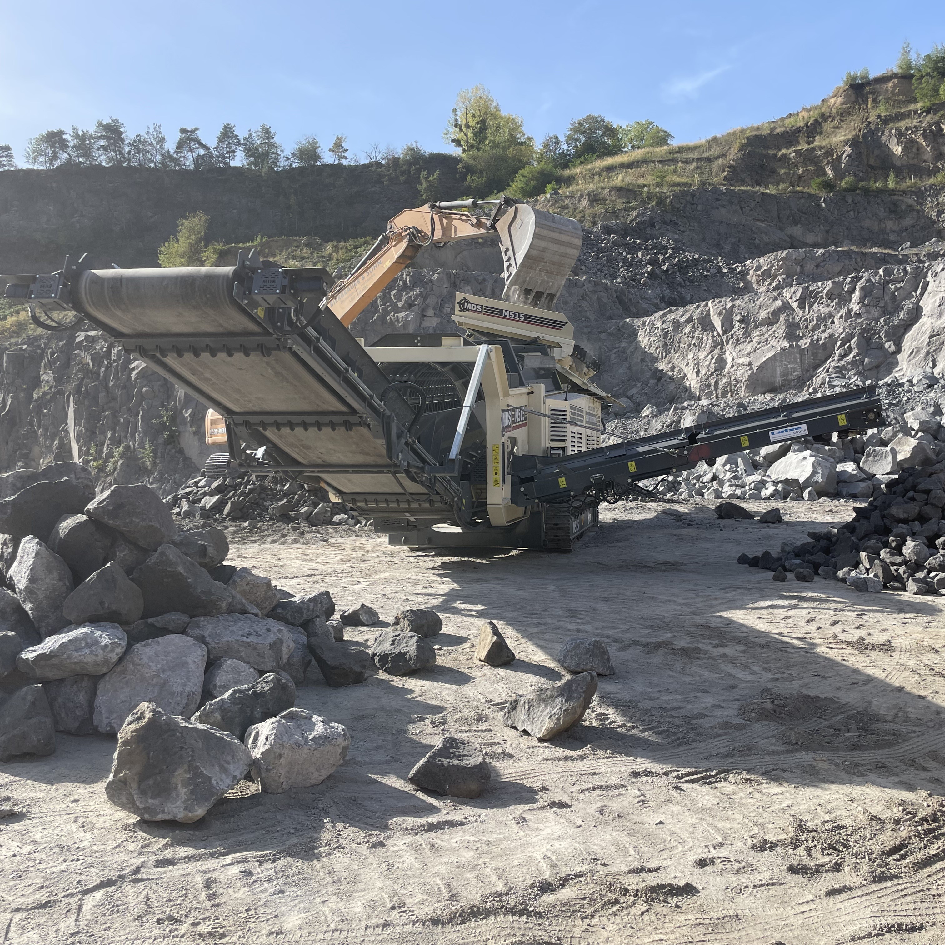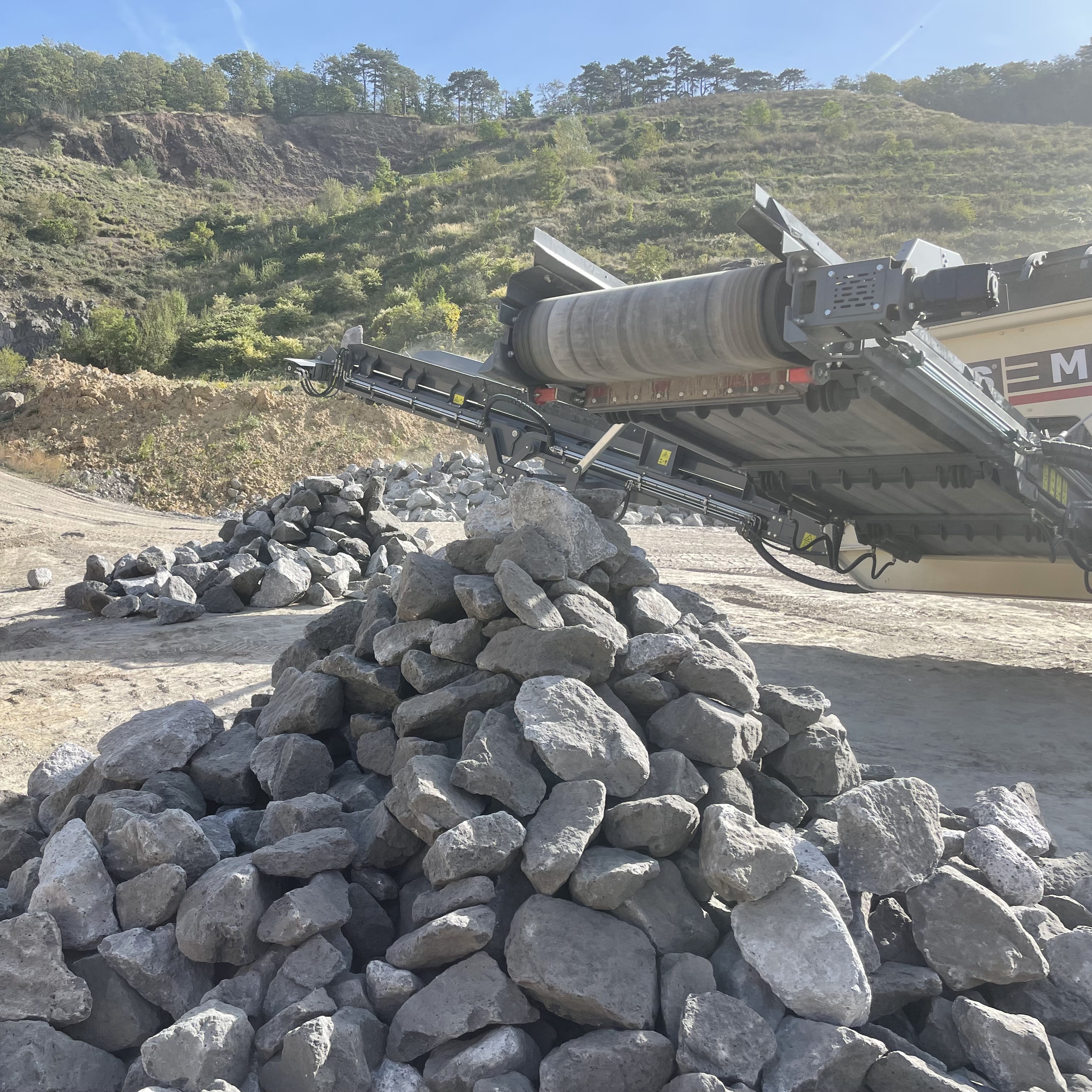 Given the density of basalt and using a rock-size calculator, it was determined that rocks weighing 10-60kg would fall within the size range of 150-300mm. The M515’s adjustable screen drum frame allowed for the installation of screens tailored to the application. For this purpose, heavy-duty 150mm and 300mm screens made of Hardox, wear-resistant steel, were used.