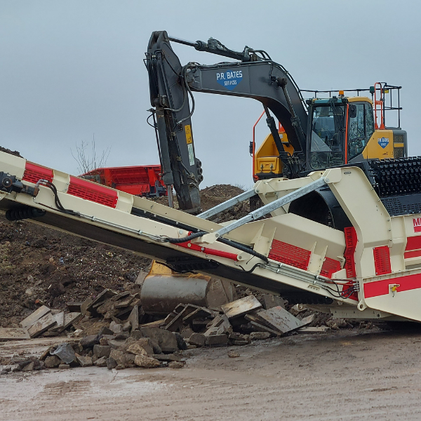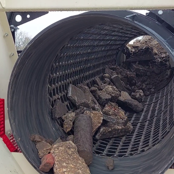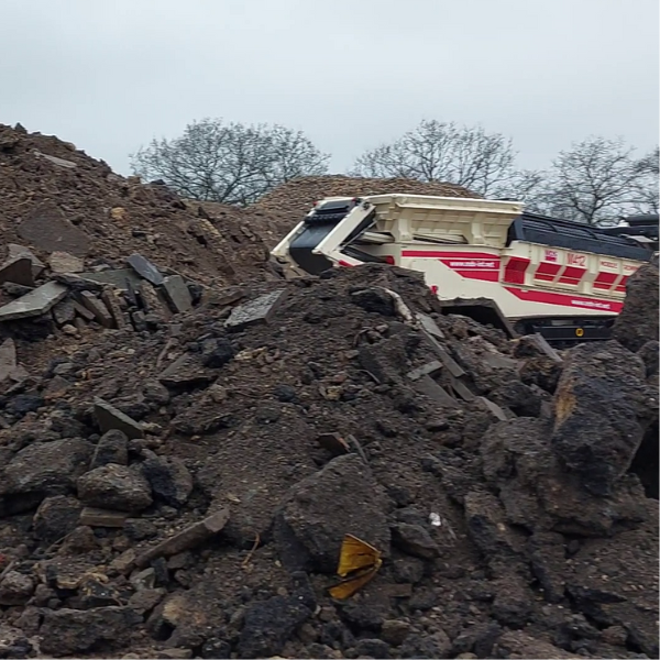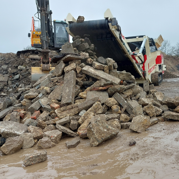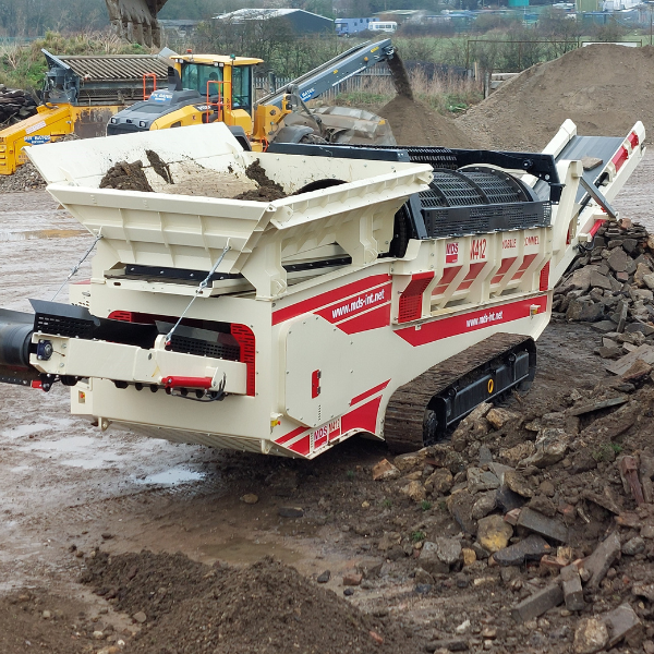 A UK recycling yard used an MDS M412 heavy duty track trommel screen to process concrete demolition waste.