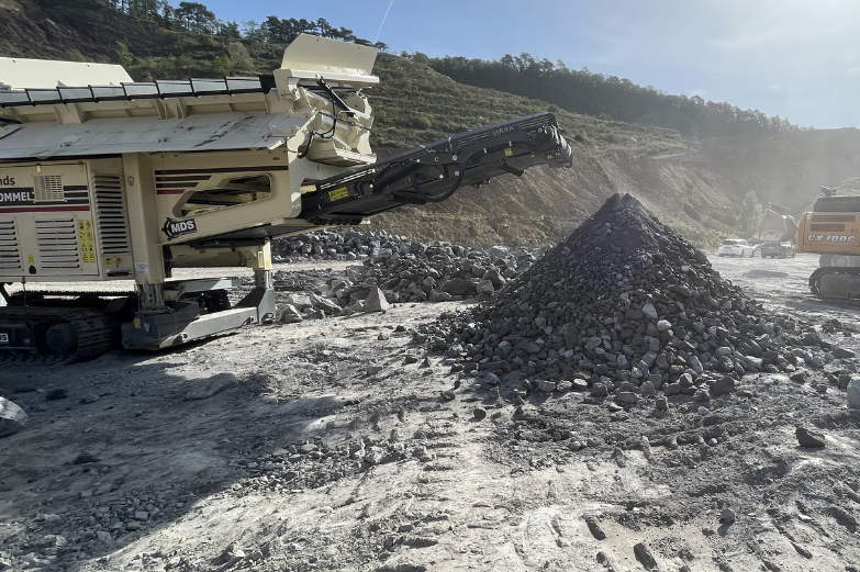 Additionally, a tipping grid with 450mm openings enabled direct feeding of material into the M515 without the need to preprocess the pile, any rocks that were too large were rejected by the grid and deflected away from the machine.