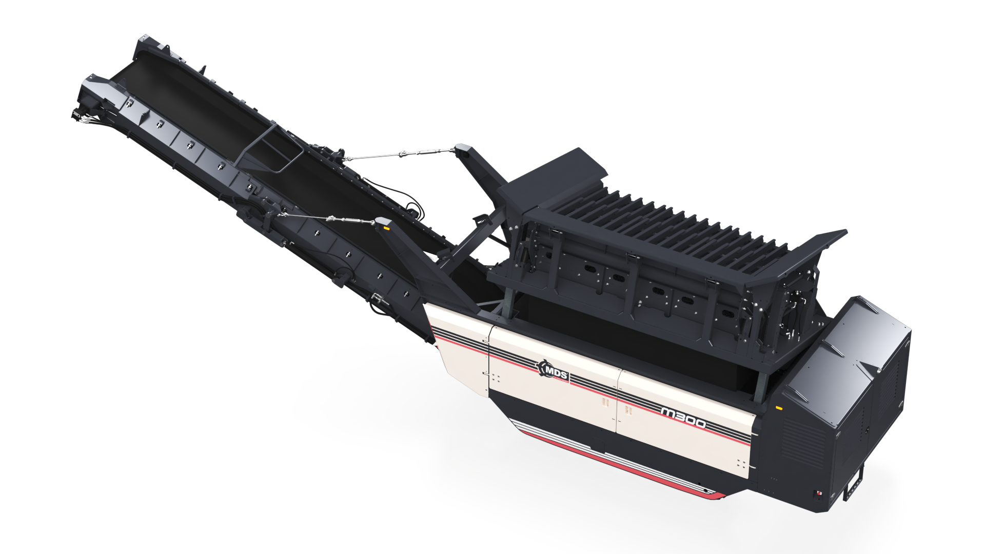 The MDS M300 is a powerful heavy-duty scalper designed to meet the toughest industrial demands. This powerful, heavy-duty machine is designed to introduce the next generation compact scalping grid. This high-performance machine is purpose-built to handle tough materials such as quarry-blasted rock and construction and demolition debris, ensuring exceptional performance in demanding environments. Compact and highly mobile, the M300 is perfectly suited to contractors, quarry operators, and recycling yards, offering an ideal combination of strength and manoeuvrability.