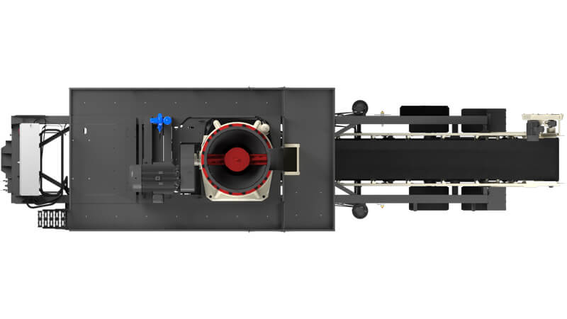 Equipped with proven bronze bushing technology within the TG320 cone, operators can adjust the eccentric throw on-site with a simple bushing rotation. The plant includes a 15 hp, 42” wide discharge conveyor, an overflow chute with a removable panel to manage feed surges in closed-circuit applications, and multiple jack options, including the patented "canted" run-on jacks for enhanced stability.