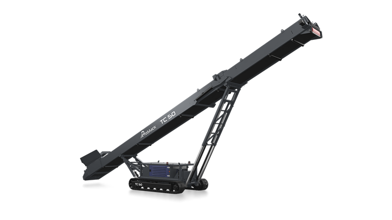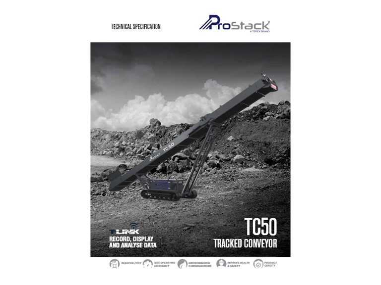 The ProStack TC 50 is a 50' (15m) long tracked stacker conveyor that is highly portable and well suited to aggregate and quarrying applications.