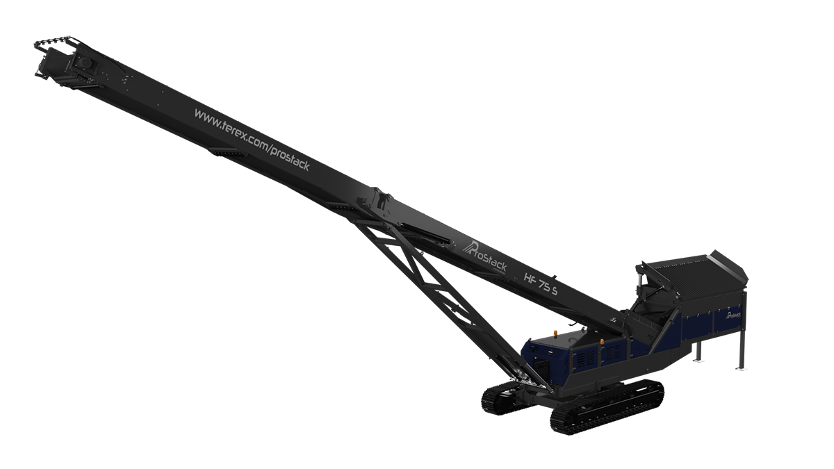 The ProStack HF 75 S Rotating Track Conveyor has been specifically designed to work alongside other Terex machines so that it can be used as a mobile link conveyor.