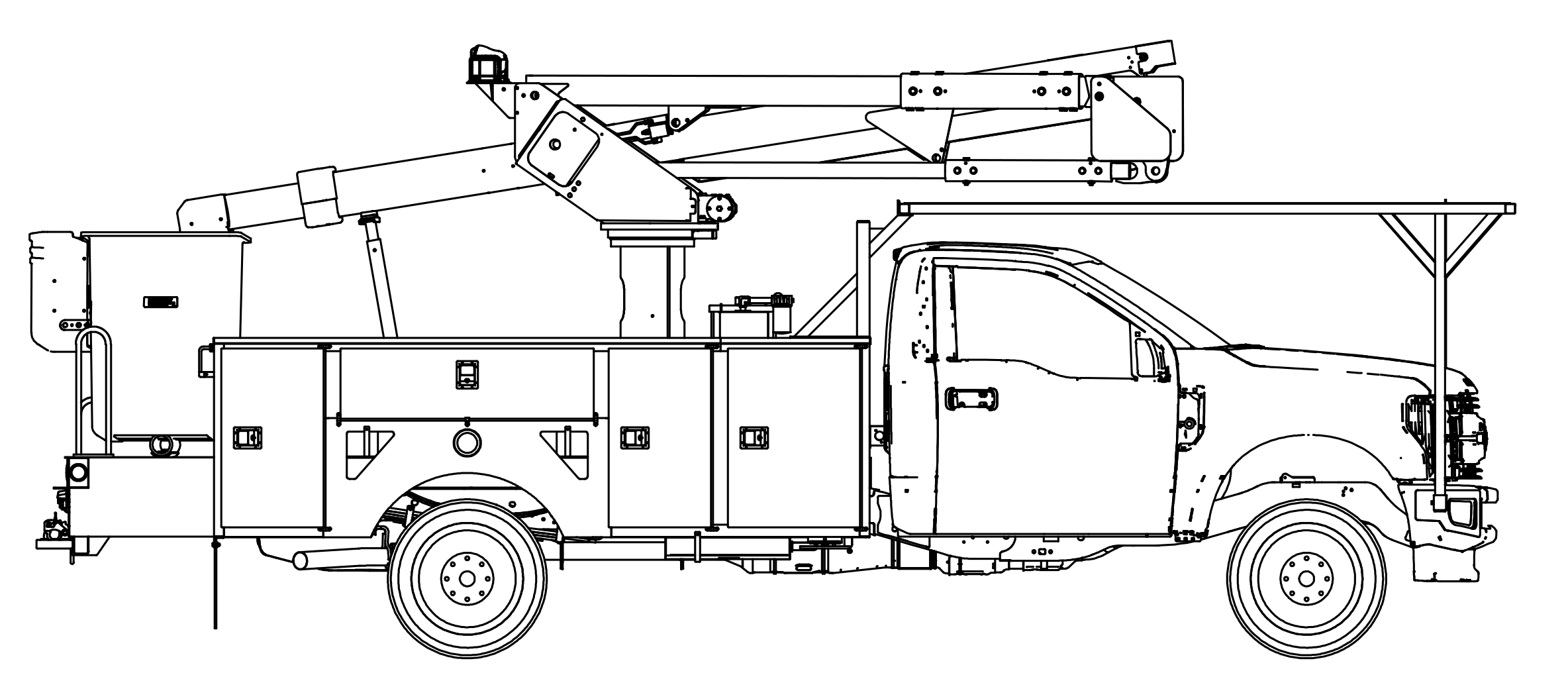 The Terex Hi-Ranger LT40 trouble truck features a simple compact design for easy maneuverability. The LT40 is typically mounted on a Class 5 truck chassis offering a working height of more than 45 feet, more than 25 feet of side reach, and a maximum platform capacity of 400 pounds. The LT40 is available with an end-mount boom tip configuration and Category 'C' rating per ANSI A92.2.